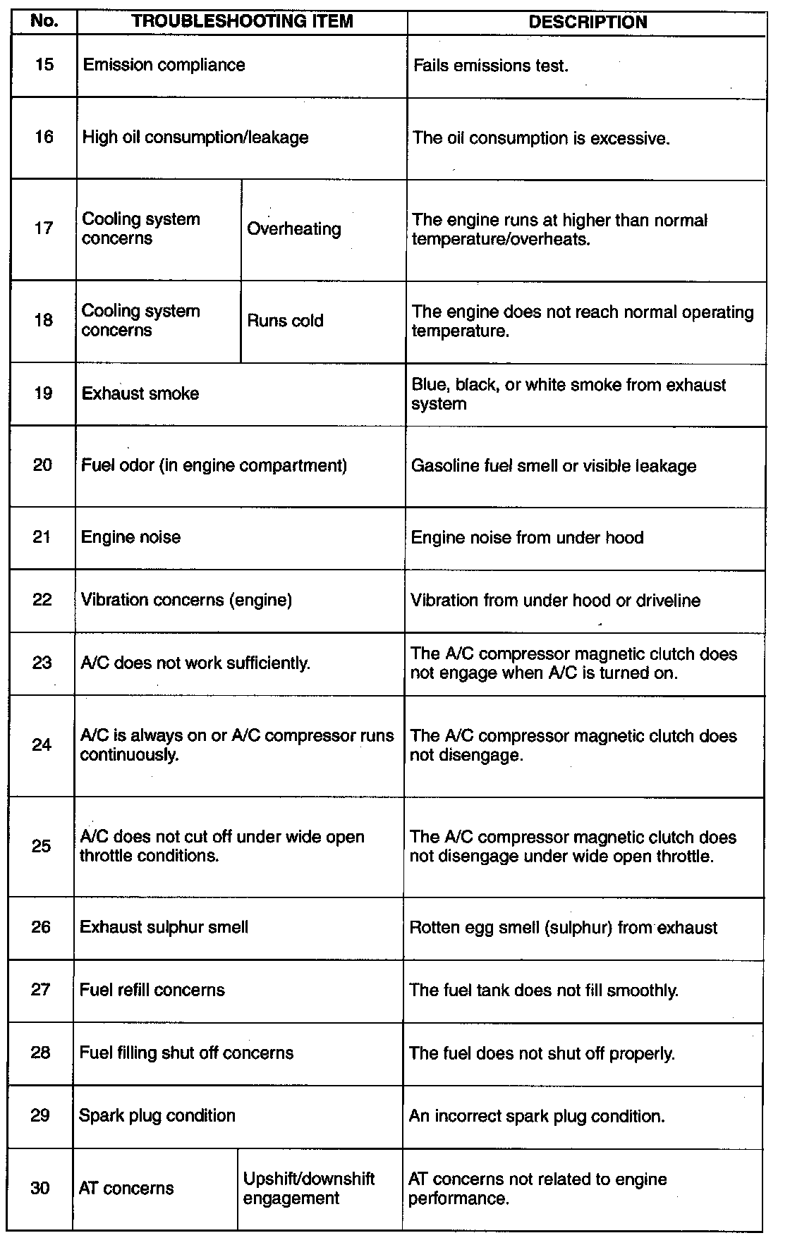 Symptom Troubleshooting Chart - Engine Driveability