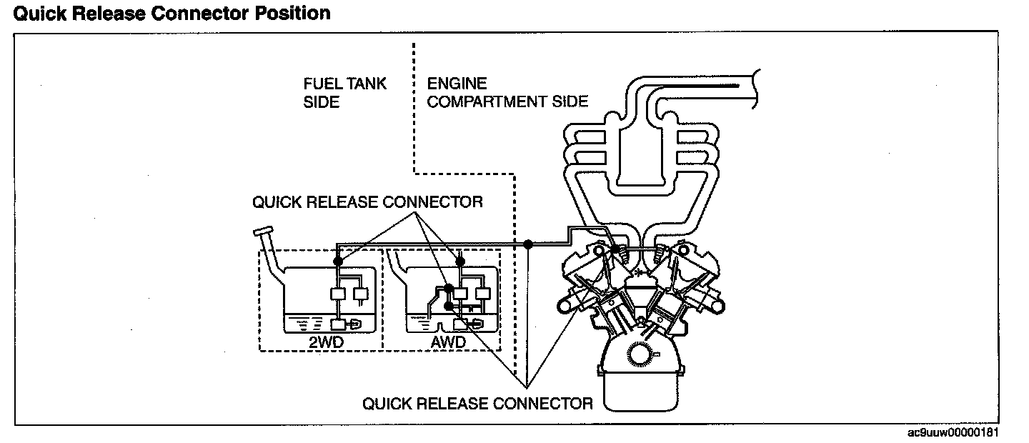 QUICK RELEASE CONNECTOR REMOVAL/INSTALLATION [MZI-3.7]WARNING: Fuel is very flammable liquid. If fuel spills or leaks from the pressurized fuel system, it will cause serious injury or death and facility breakage. Fuel can also irritate skin and eyes. To prevent this, always complete the "Fuel Line Safety Procedure", while referring to the "BEFORE SERVICE PRECAUTION".