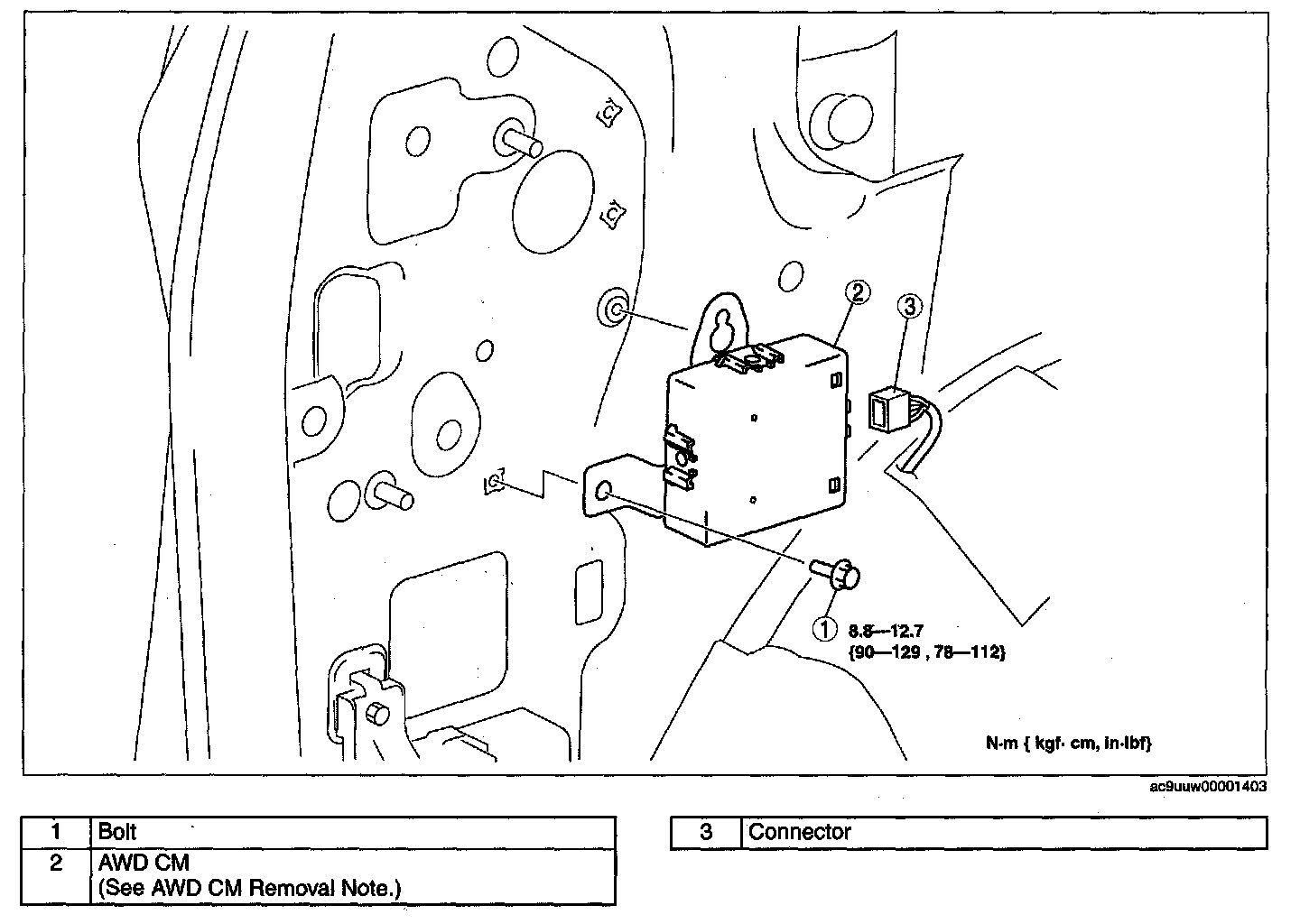 AWD CONTROL MODULE REMOVAL/INSTALLATION1. Disconnect the negative battery cable.