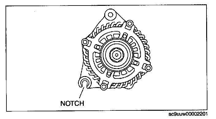 NOTE: The generator lower bolt cannot be fully removed from the engine because it contacts the body frame. However, the generator can be removed/installed without fully removing the lower bolt because there is a notch at the lower bolt installation part of the generator.