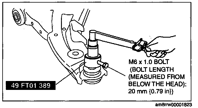 3. Rotate the ball joint stud 5 times. Install the SST and M6 x 1.0 bolt (bolt length (measured from below the head): 20 mm (0.79 in)) to the ball joint stud, measure the rotational torque using a torque wrench.