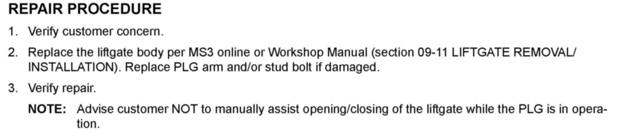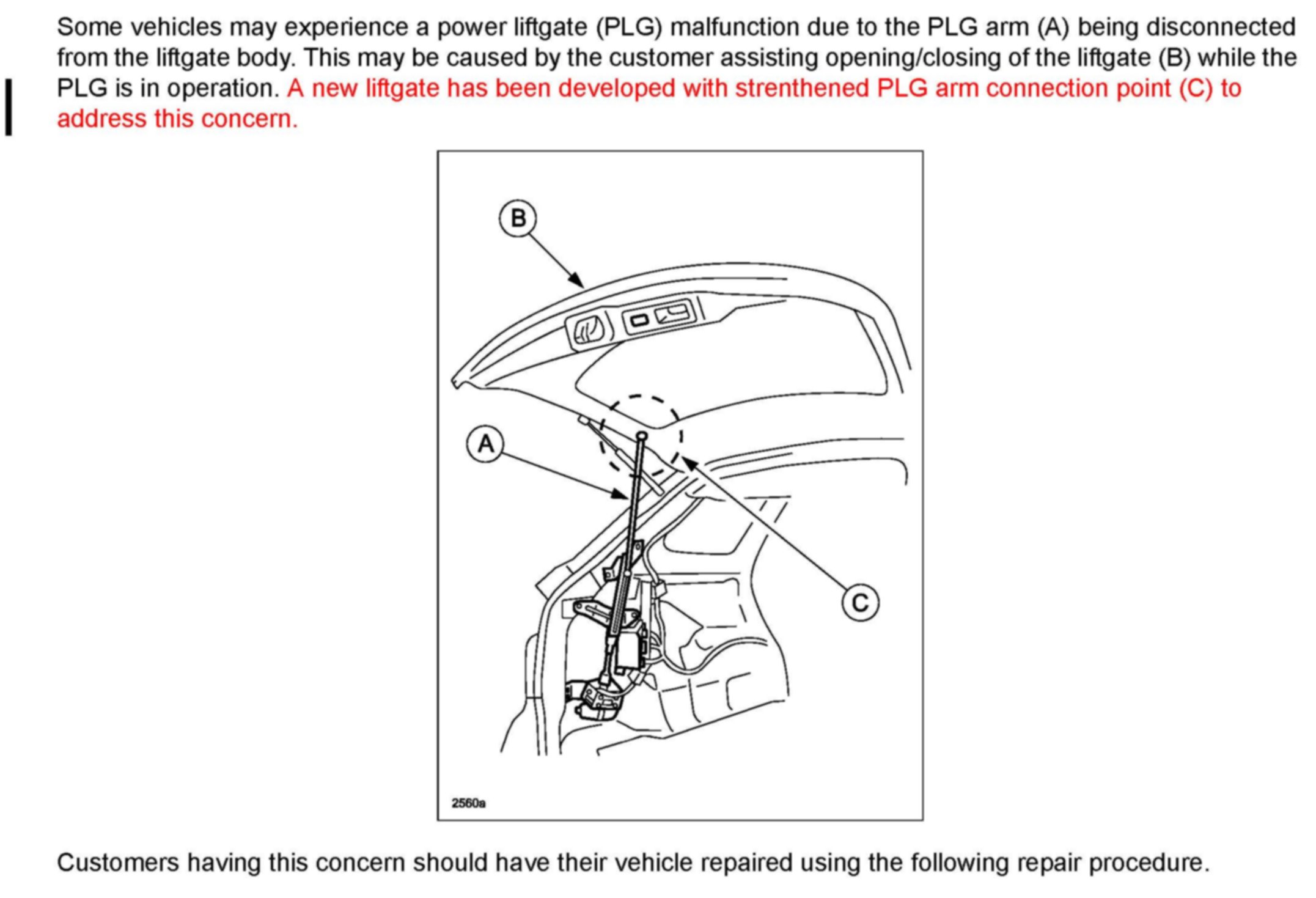 POWER LIFTGATE MALFUNCTION DUE TO DISCONNECTED ARM