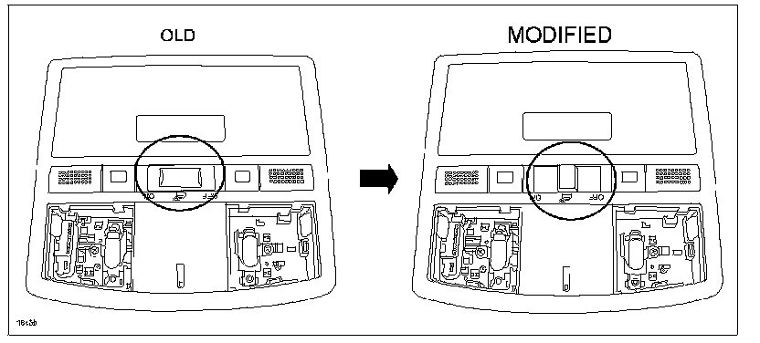 ^ The modified front map light assembly can be identified by the redesigned dome light switch.