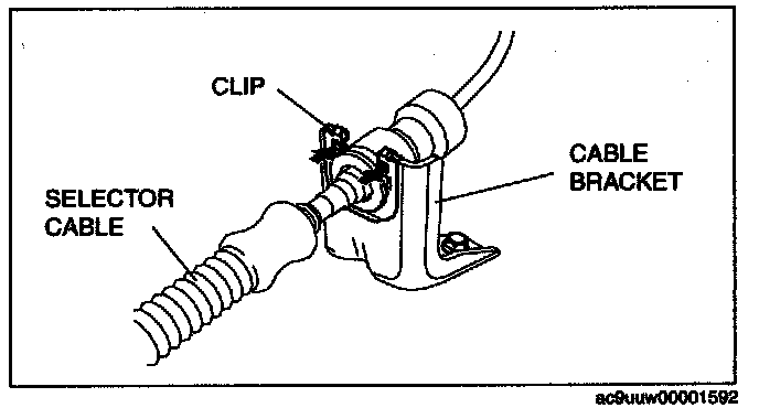 8. Securely install the selector cable to the selector cable bracket.