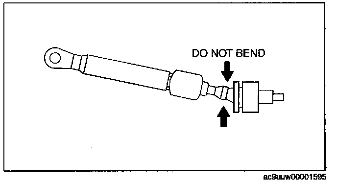 ^ Bending the selector cable in the manner shown in the figure will damage the cable and it may become loose when shifted. When installing the selector cable, hold it straight.