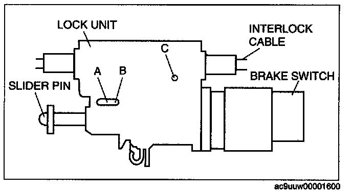 ^ Applying a load to the interlock cable while pressing the lock piece in can affect the lock unit operation.