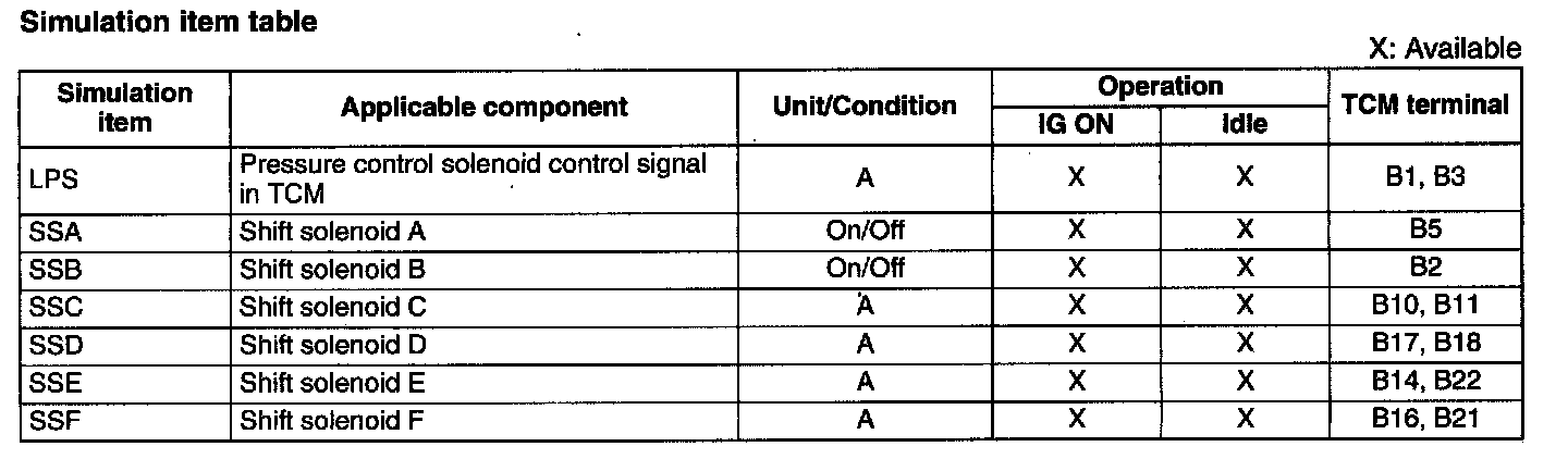 ^ If the operation of output parts cannot be verified after the active command mode inspection is performed, this could indicate the possibility of an open or short circuit, sticking, or operation malfunction in the output parts.