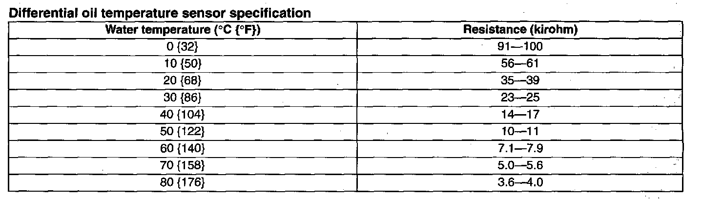 ^ If not as specified, inspect the harness for continuity. If there is normal continuity between the terminals, replace the differential oil temperature sensor.