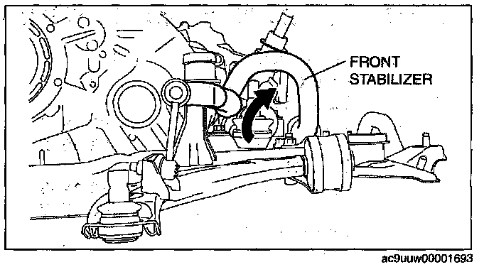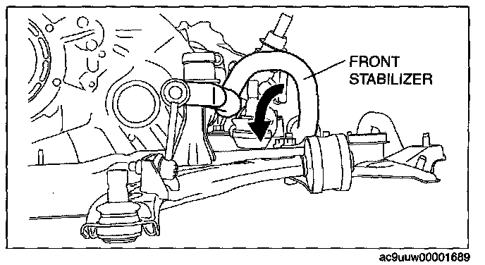 1. Disconnect the front stabilizer control link, and rotate the stabilizer to the front to secure a space from the side.