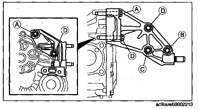 Bolt D: 42 - 62 Nm (4.3 - 6.3 kgf-m, 31 - 45 ft-lbf)