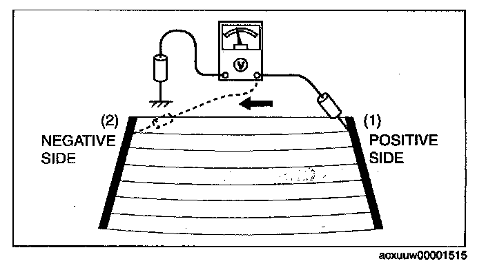 CAUTION: Directly touching the rear window defroster filament with the lead of the tester could damage it. Wrap aluminum foil around the end of the lead and inspect the filament by touching it with the foil.