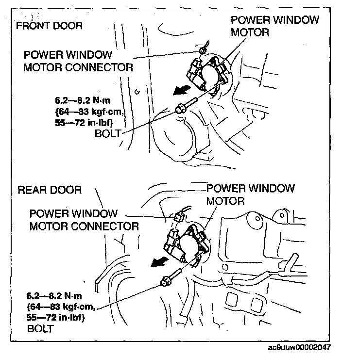 POWER WINDOW MOTOR REMOVAL/INSTALLATION1. Fully lower the rear door glass.