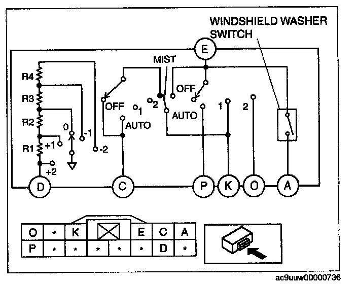 Windshield Washer Switch: Testing and Inspection