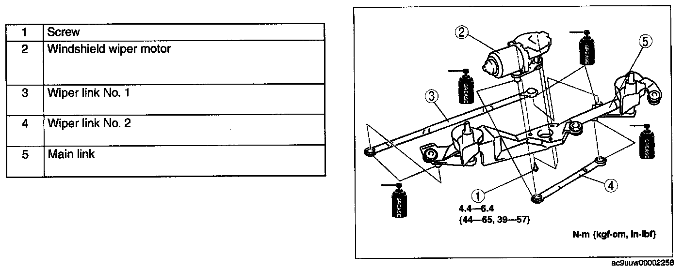 WINDSHIELD WIPER MOTOR DISASSEMBLY/ASSEMBLY1. Disassemble in the order indicated in the table.