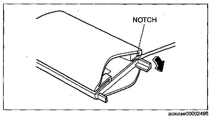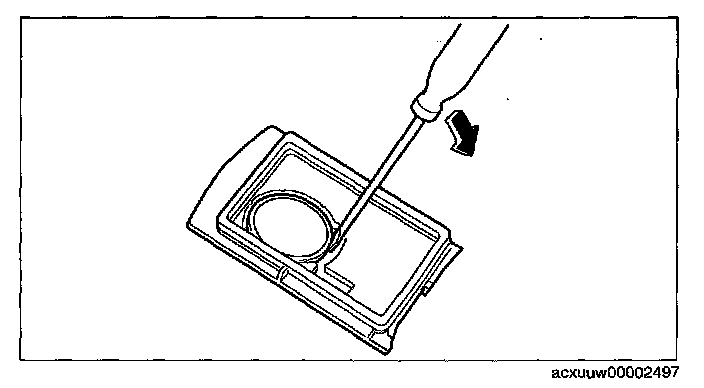 TRANSMITTER BATTERY REPLACEMENT [KEYLESS ENTRY SYSTEM]1. Insert a small flathead screwdriver into the transmitter notch and remove the key from the transmitter by pressing the tab.