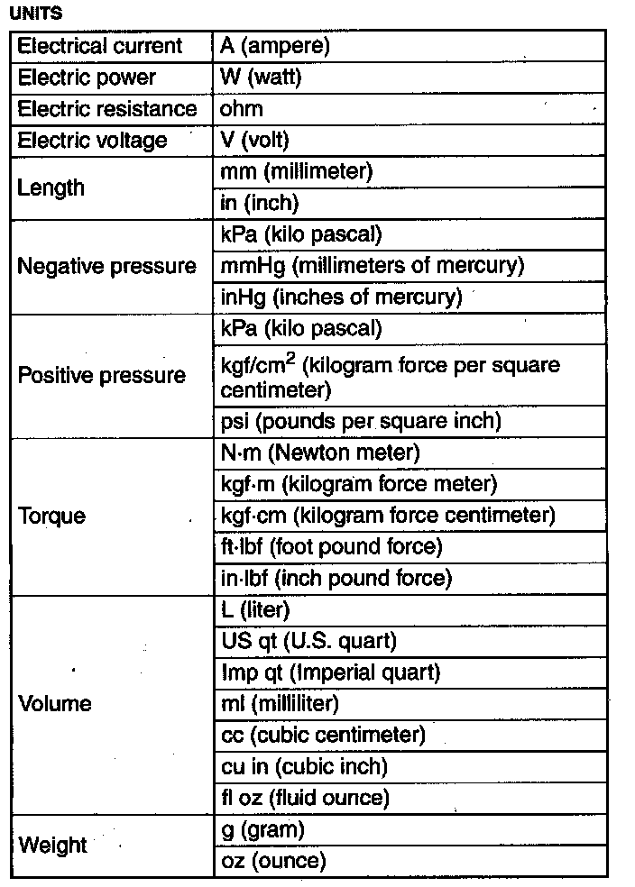 - All numerical values in this manual are based on SI units. Numbers shown in conventional units are converted from these values.