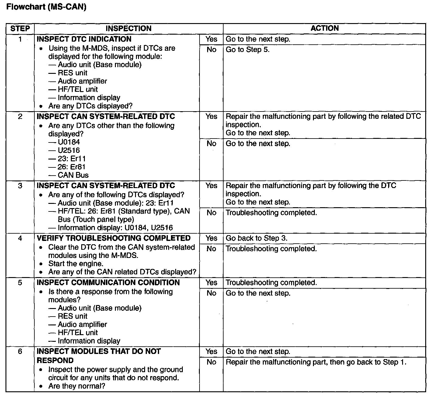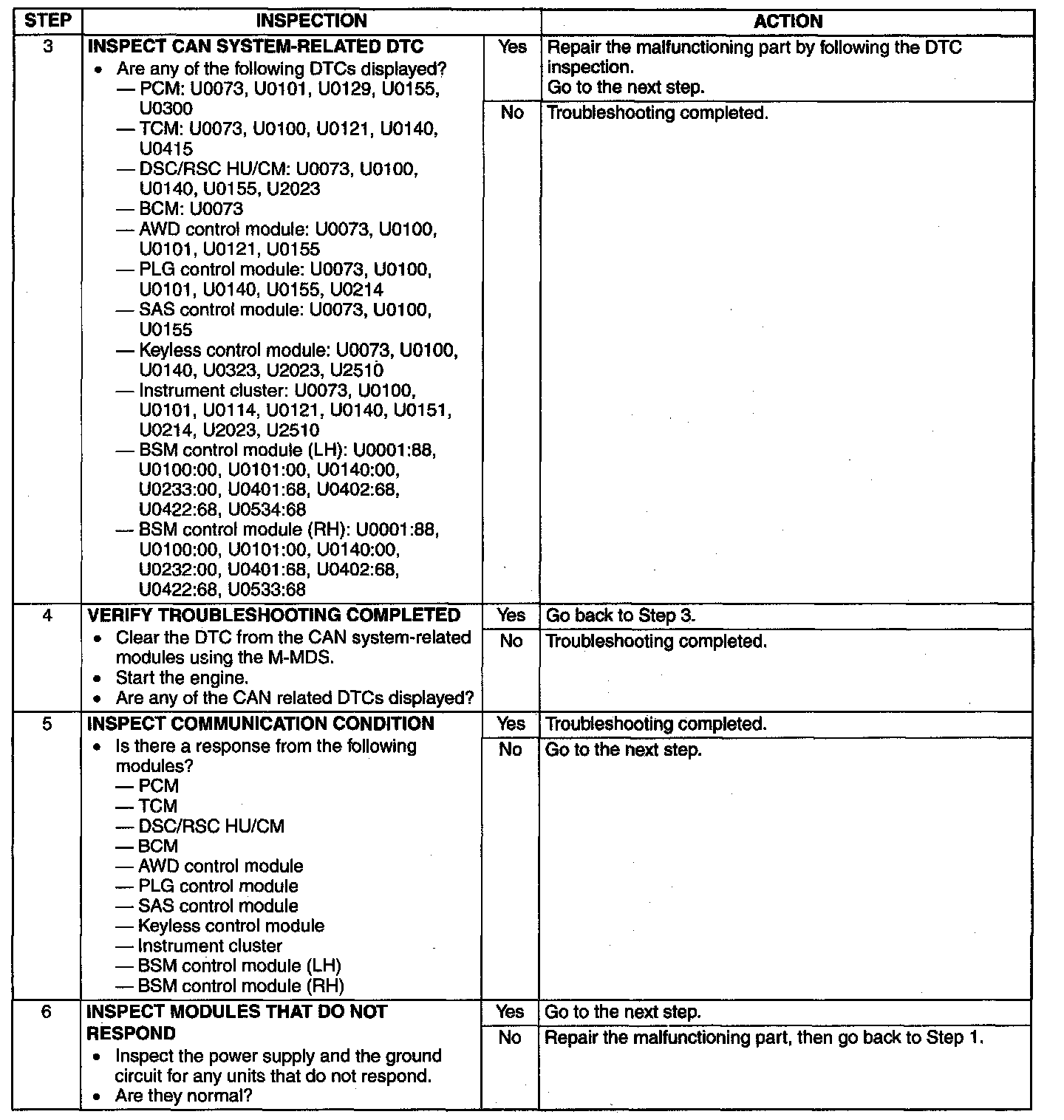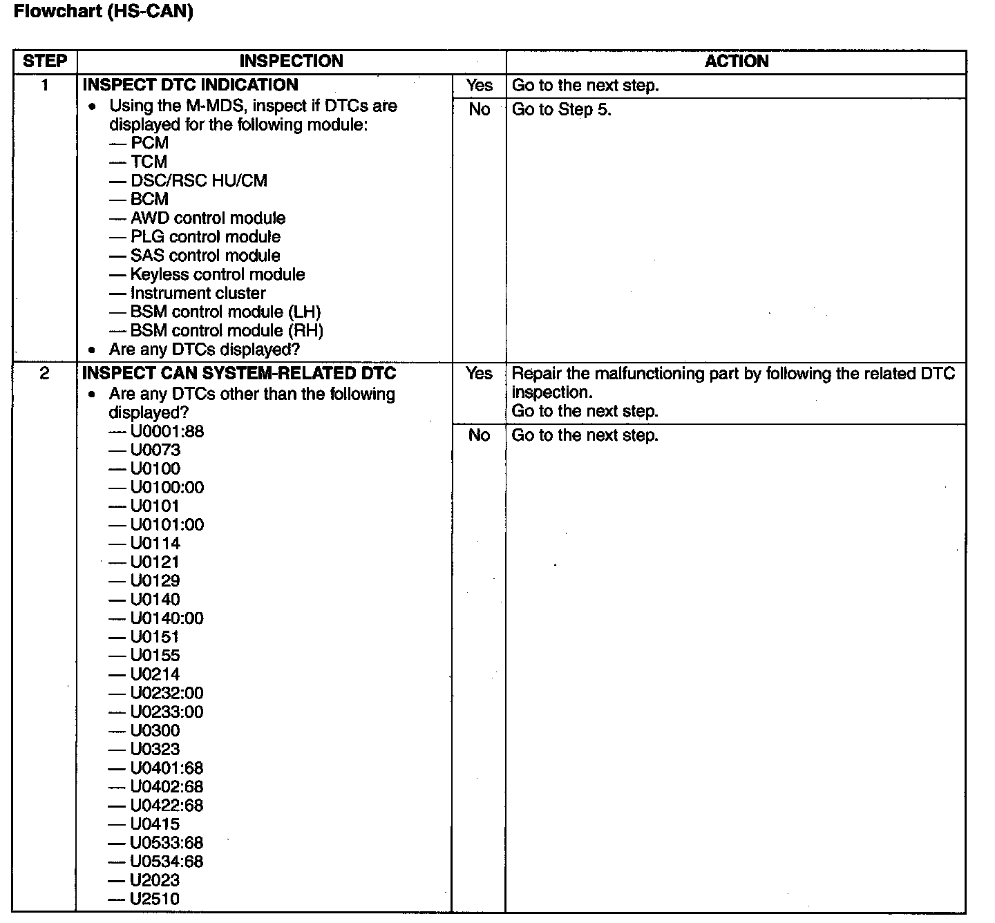 - If the controller area network (CAN) system is malfunctioning, read the DTCs of the following modules, using the M-MDS to determine the malfunctioning system.