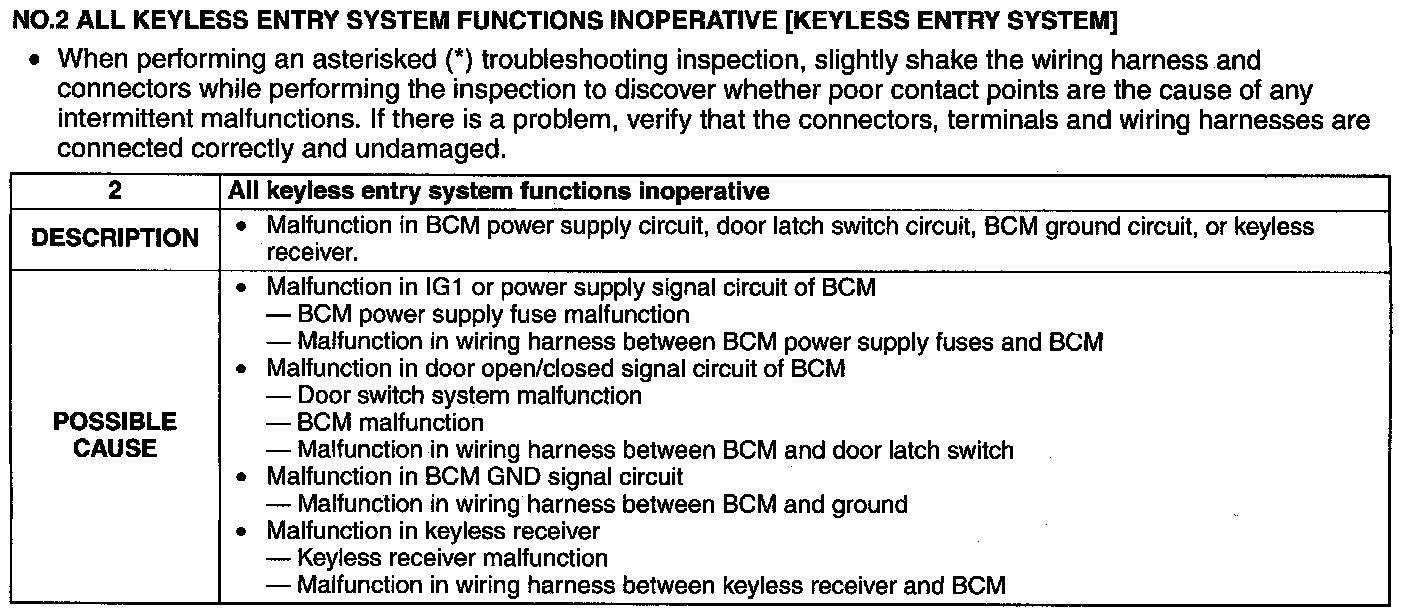 No.2 All Keyless Entry System Functions Inoperative