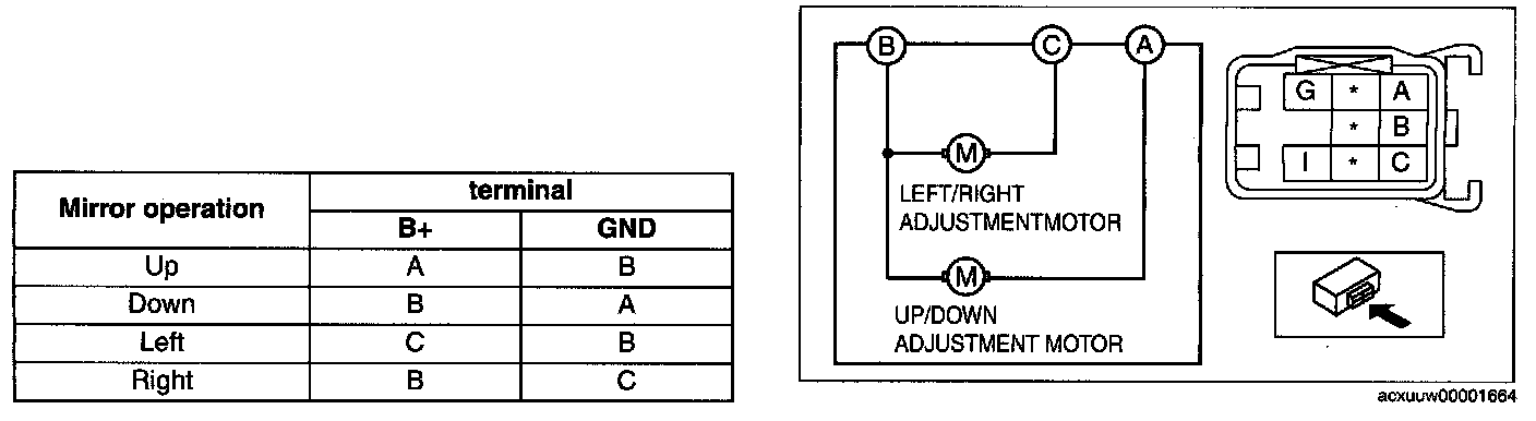 POWER OUTER MIRROR INSPECTION1. Apply battery positive voltage to the power outer mirror terminals and inspect the operation of the power outer mirror.
