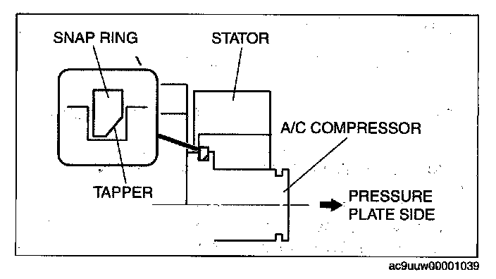 1. Install the snap ring so that the tapered area is on the pressure plate side.