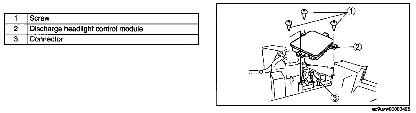 DISCHARGE HEADLIGHT CONTROL MODULE REMOVAL/INSTALLATION