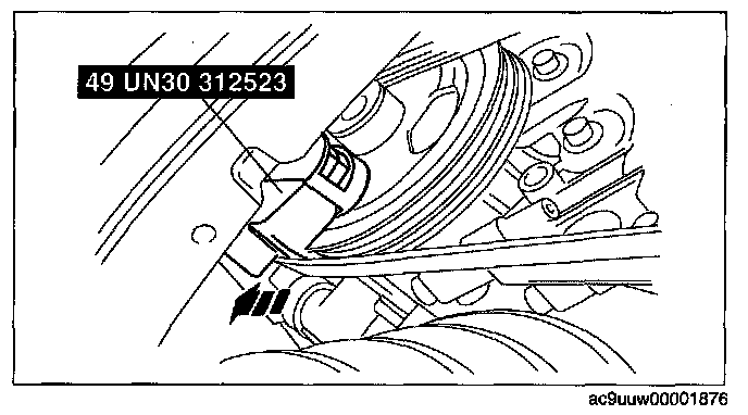 5. Verify that the drive belt auto tensioner indicator mark does not exceeds the maximum belt length. (See DRIVE BELT INSPECTION [MZI-3.7].) Testing and Inspection