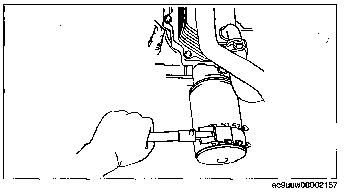 4. Install the oil filter until the O-ring contacts the sealing surface.