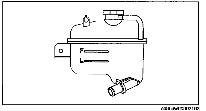 1. Verify that the engine coolant level in the coolant reserve tank is between the F and L marks.