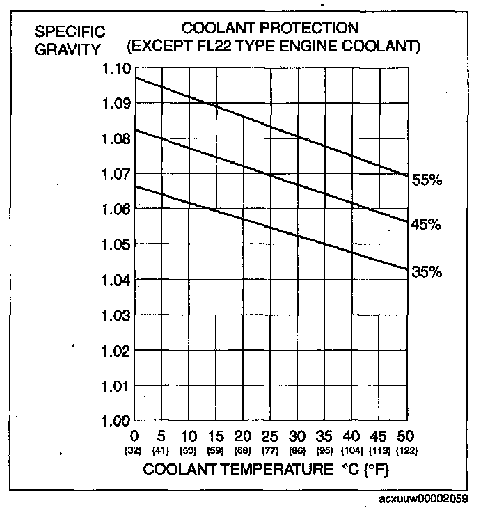 2. Determine the engine coolant protection level by referring to the graph shown in the figure.