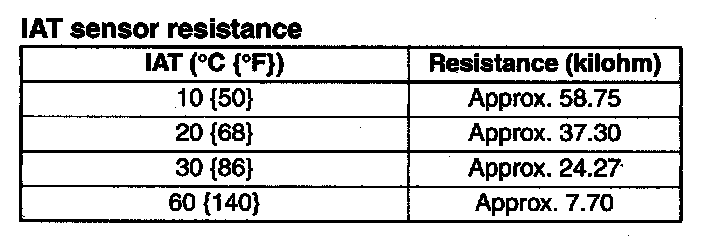 INTAKE AIR TEMPERATURE (IAT) SENSOR INSPECTION [MZI-3.7]NOTE: Before performing the following inspection, make sure to follow the procedure as indicated in the troubleshooting flowchart. (See HOW TO USE THIS MANUAL.)