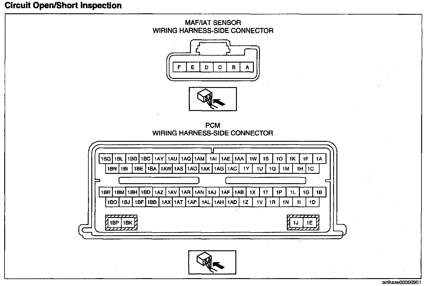 - MAF/IAT sensor terminal F and PCM terminal 1AF