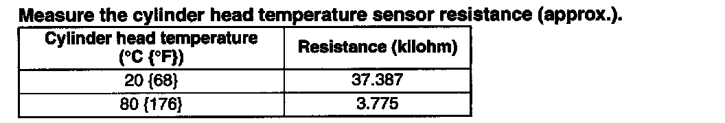 Measure the cylinder head temperature sensor resistance (approx.).