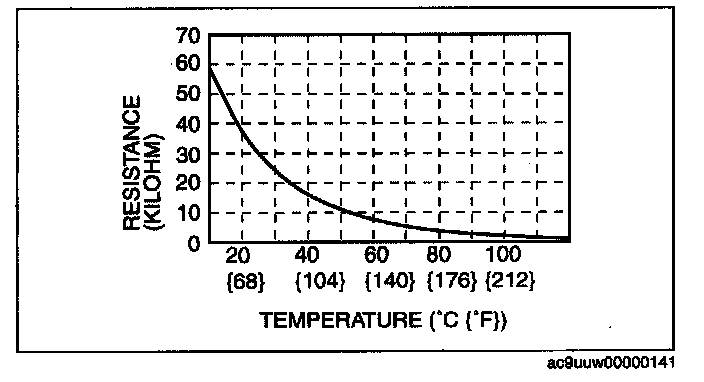 Cylinder head temperature sensor characteristics graph (reference)