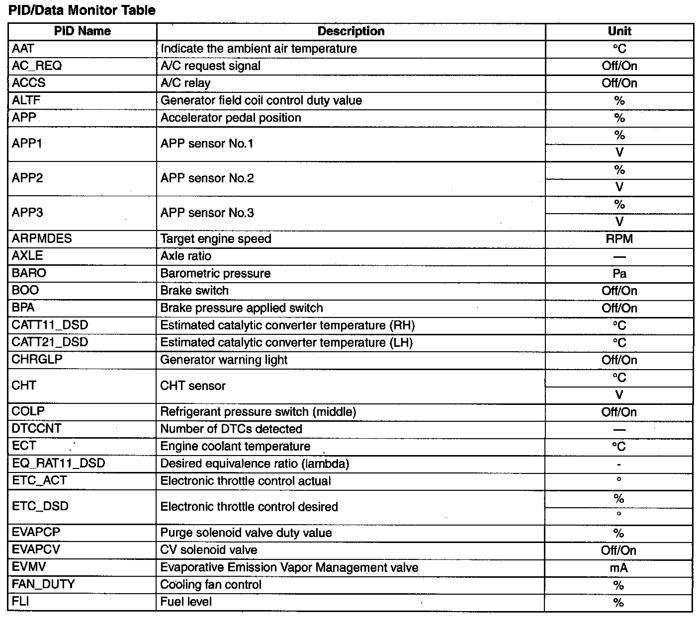 PID/DATA Monitor and Record ProcedureNOTE: The PID/DATA MONITOR function monitors the calculated value of the input/output signals in the PCM. Therefore, an output device malfunction is not directly indicated as a malfunction of the monitored value for the output device. If a monitored value of an output device is out of specification, inspect the monitored value of the input device related to the output control.