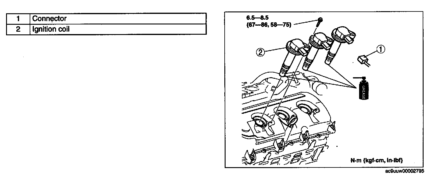 - Apply small amount of the specified dielectric grease to the inside of the ignition coils, then install the ignition coils to the spark plugs.