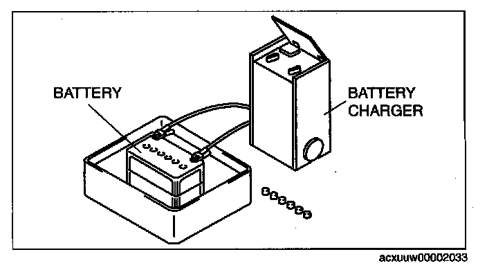 3. Connect a battery charger to the battery and adjust the charging current as follows.