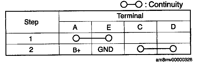 Verify the continuity between the relay terminals.