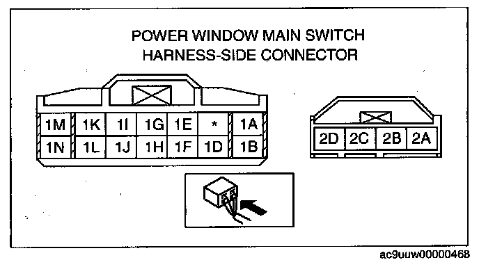 POWER WINDOW MAIN SWITCH INSPECTIONNOTE: Before proceeding with diagnosis of malfunctioning power windows, ensure the POWER WINDOW INITIALIZATION PROCEDURE has been performed.
