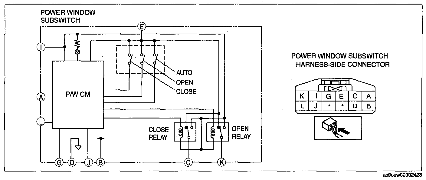 - If not as specified, replace the power window subswitch.