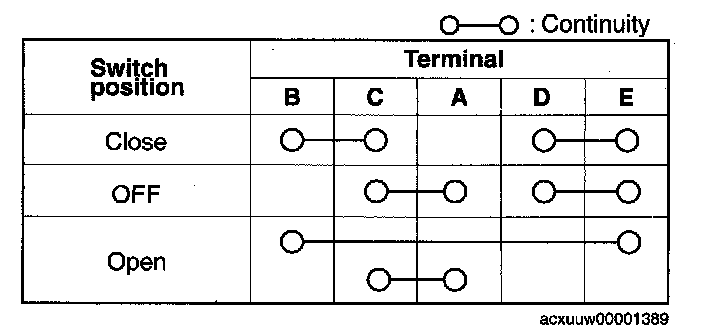 1. Inspect for continuity between the power window subswitch terminals.