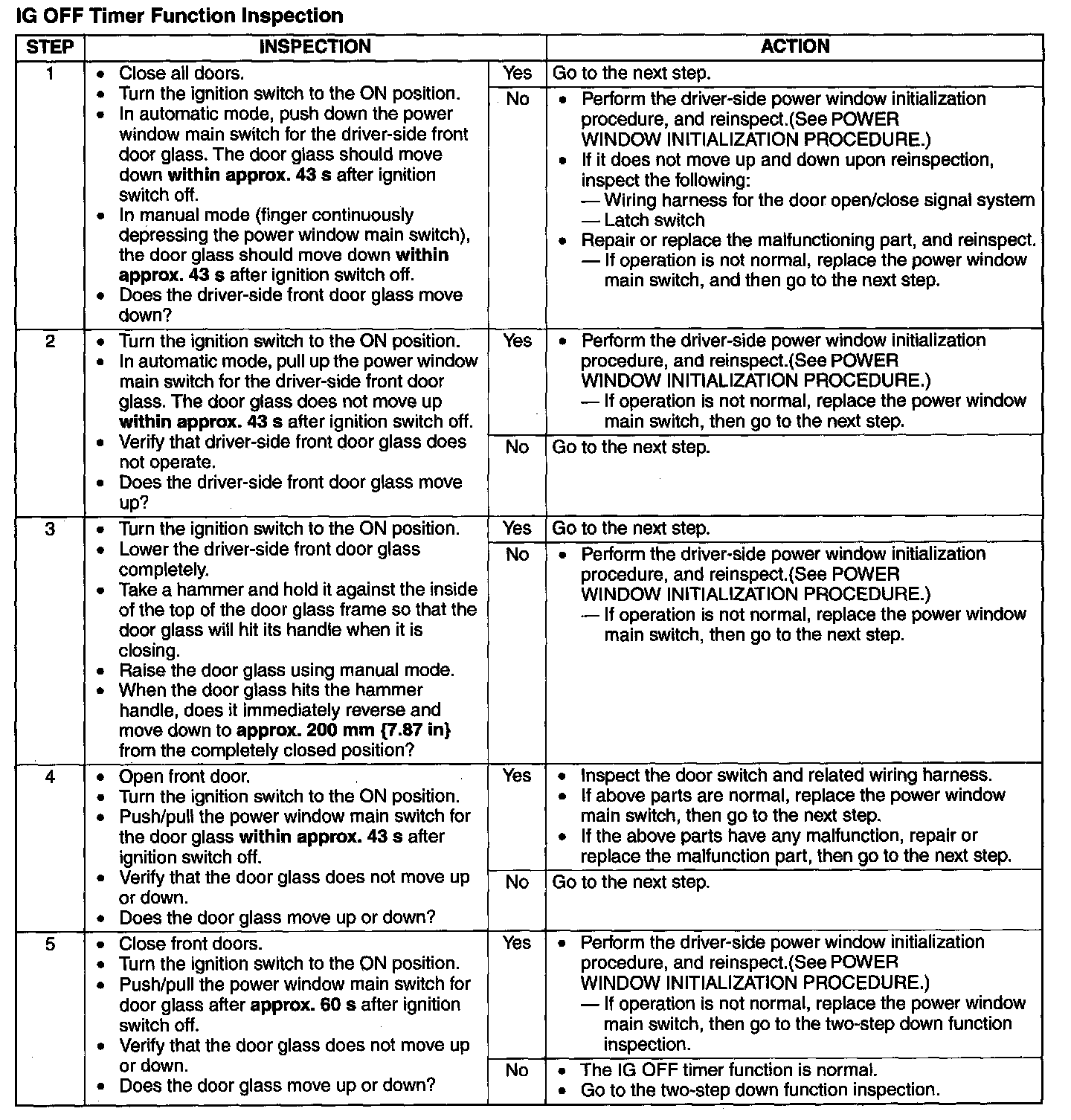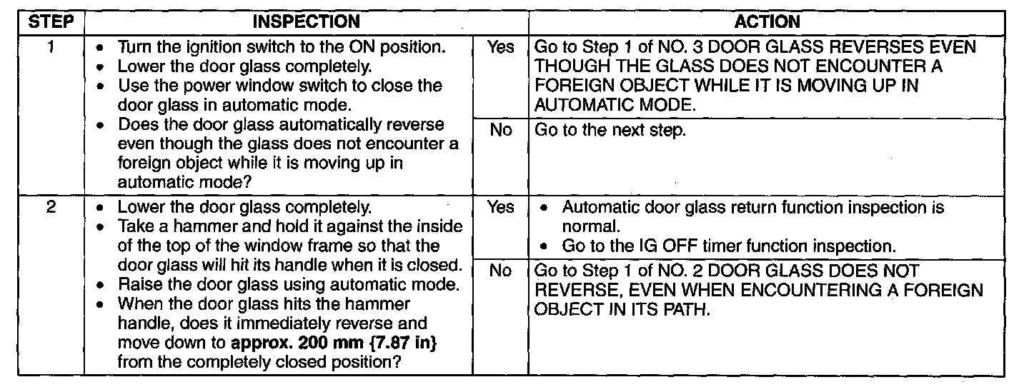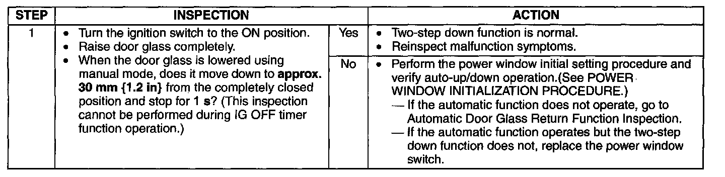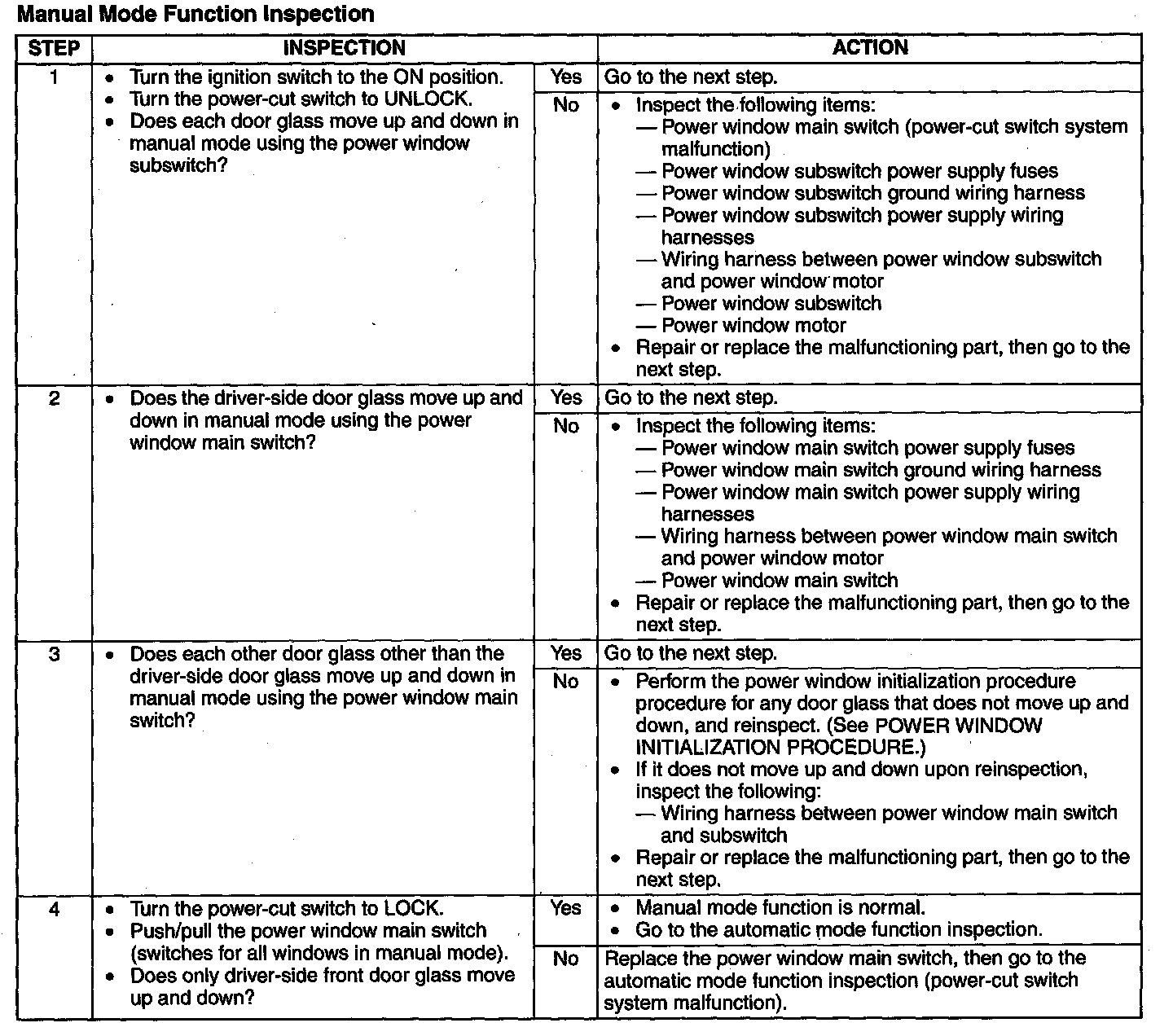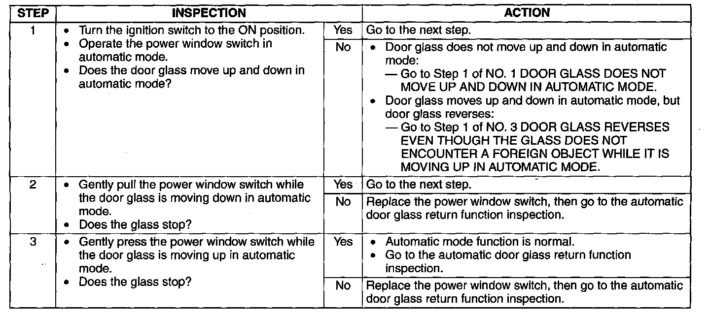 BASIC POWER WINDOW SYSTEM INSPECTION [POWER WINDOW SYSTEMS (AUTO-OPEN/CLOSE FUNCTION)]Step 1-Step 4: