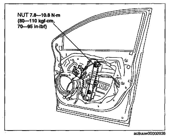 FRONT POWER WINDOW REGULATOR REMOVAL/INSTALLATION1. Disconnect the negative battery cable.