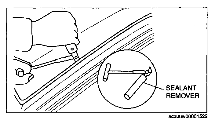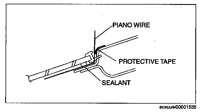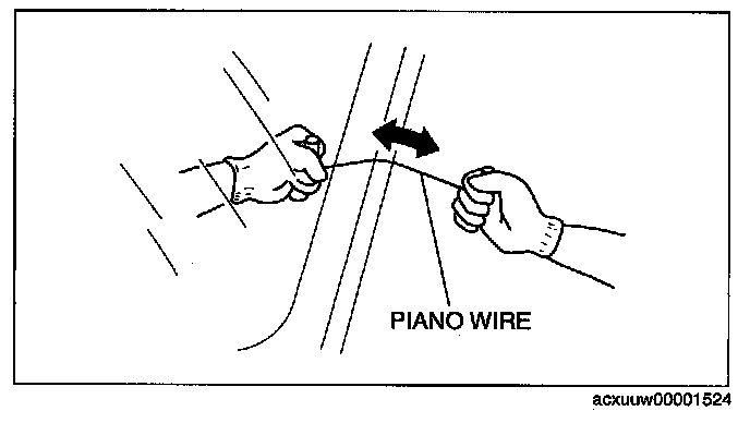 NOTE: For the areas of the sealant that are difficult to cut, use the piano wire and follow the procedure under "Reusing Windshield".