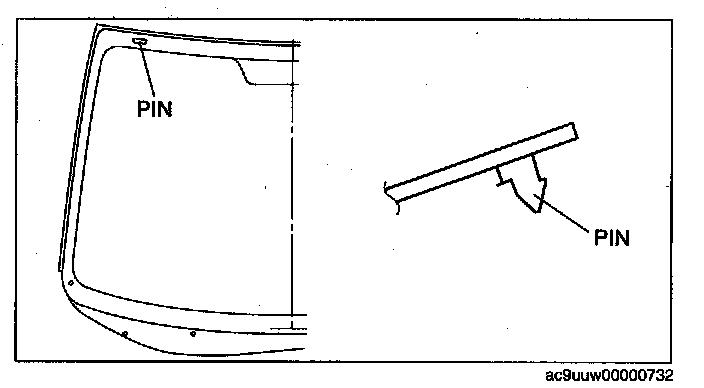 NOTE: Before removing the pin from the windshield glass, place an alignment mark on the windshield.