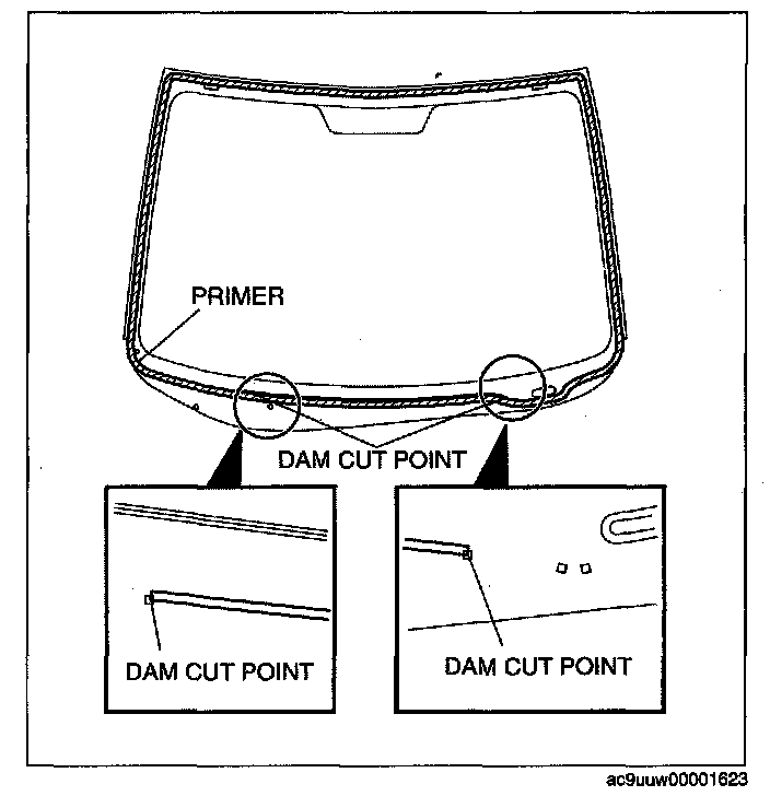 3. If the existing windshield is to be reinstalled, attach the dam along the ceramic voids.