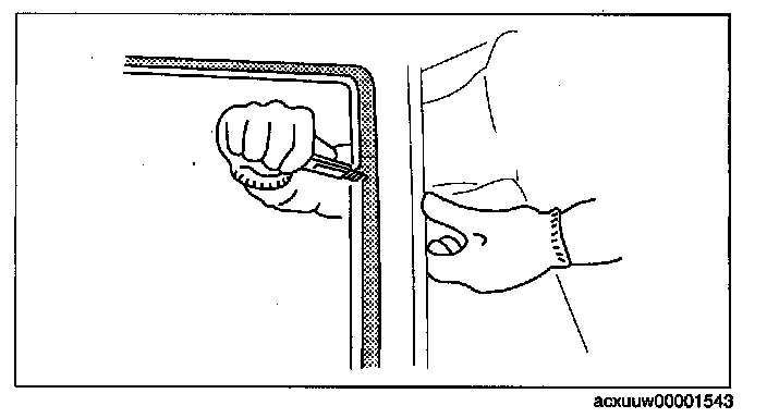 NOTE: Before removing the windshield from the body, mark the position of the windshield by affixing tape to the windshield and body panel.