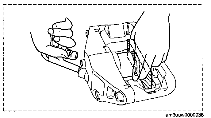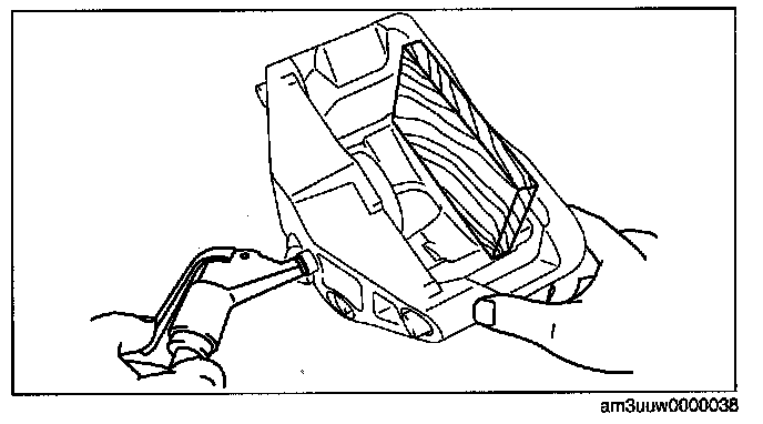 Warning: When compressed air is blown into the caliper body, injury to a finger or other part from pinching could result from the piston springing up. When blowing in compressed air, do not place your fingers between the piston and caliper body when performing the work.