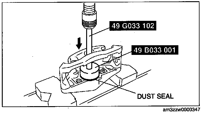1. Assemble a new dust seal to the caliper using the SSTs and a press with a press-in force of 834 N (85 kgf, 187 in-lbf).