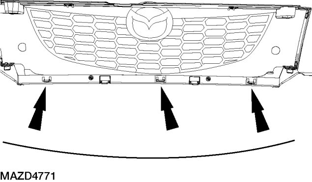 4. Release the 3 radiator grille retaining clips and remove the radiator grille from the fascia.