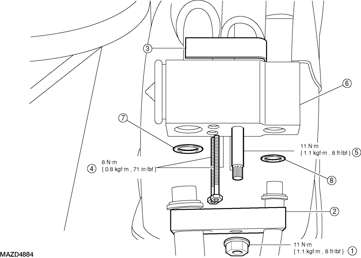 - To install, tighten to 8 Nm {0.8 kgf-m, 71 in-lbf}.